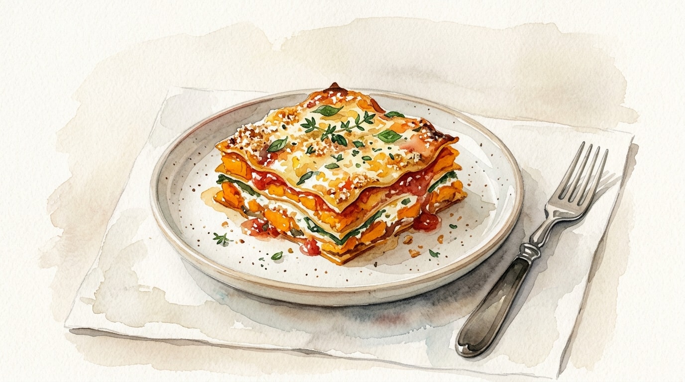 - Slicing the sweet potato and squash to a uniform 5mm thickness ensures they cook evenly and create beautiful, distinct layers when the lasagne is cut.