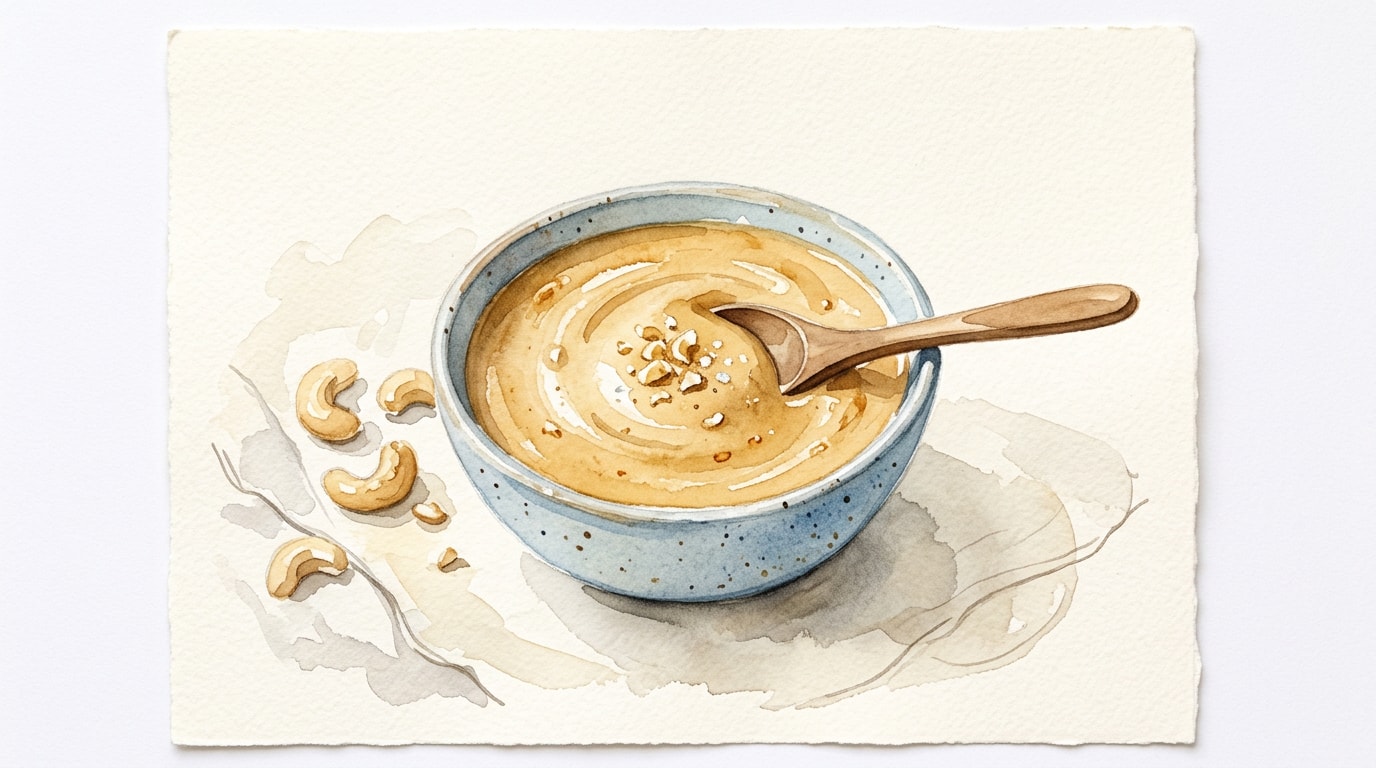 Pour the smooth cashew butter into a clean glass jar, seal tightly, and allow it to cool completely before storing.