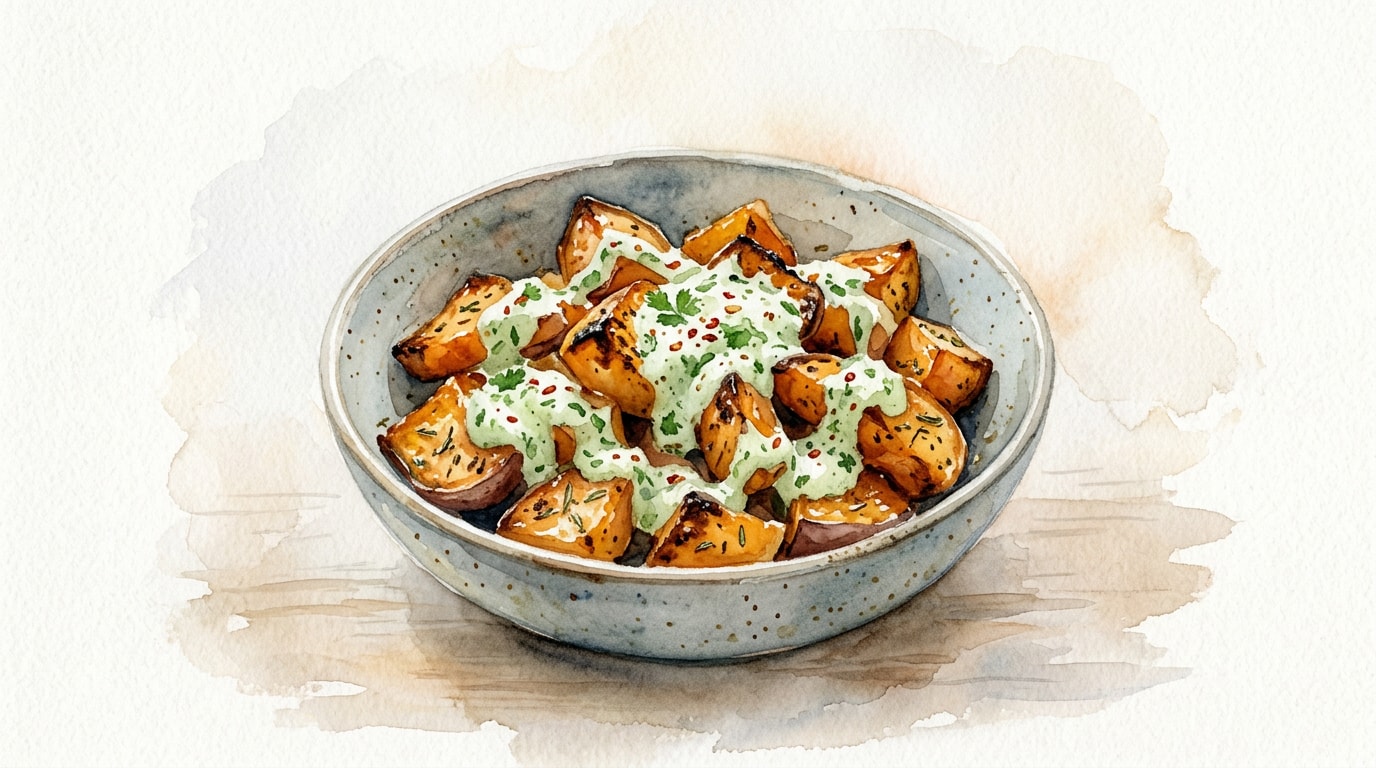 Reheating: Reheat sweet potatoes in a 175°C/350°F oven for 10 minutes until warm. Serve over cold yogurt and sauce.