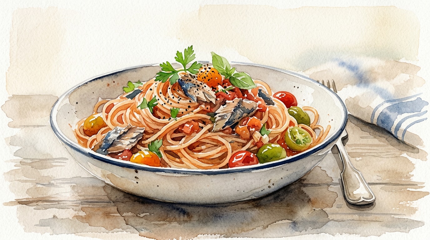 - Using starchy pasta water is the secret to a cohesive sauce. The starches act as a binder, pulling the olive oil, tomato juices, and fish oils together into a glossy coating that clings to the spaghetti.