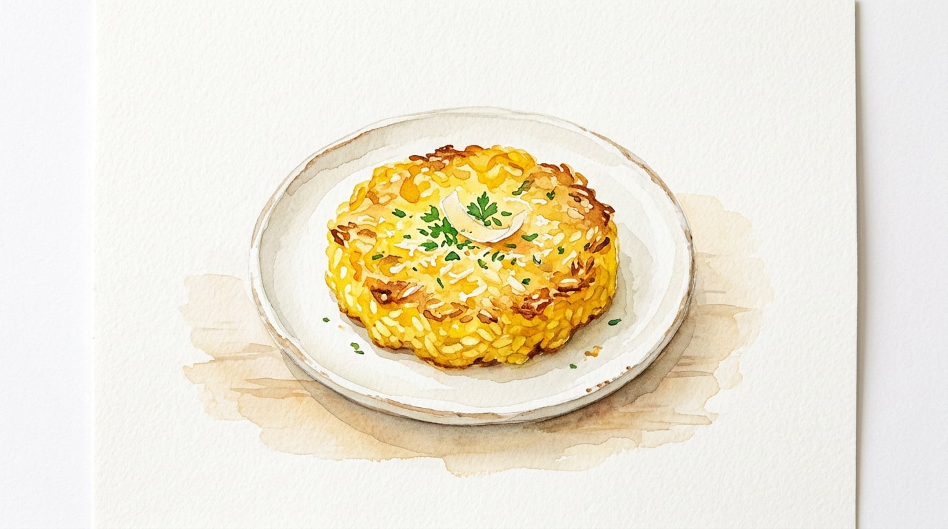 Fry the risotto undisturbed for 8 to 10 minutes. Press down occasionally with the spatula to ensure even contact. Look for a deep golden-brown crust forming around the edges.