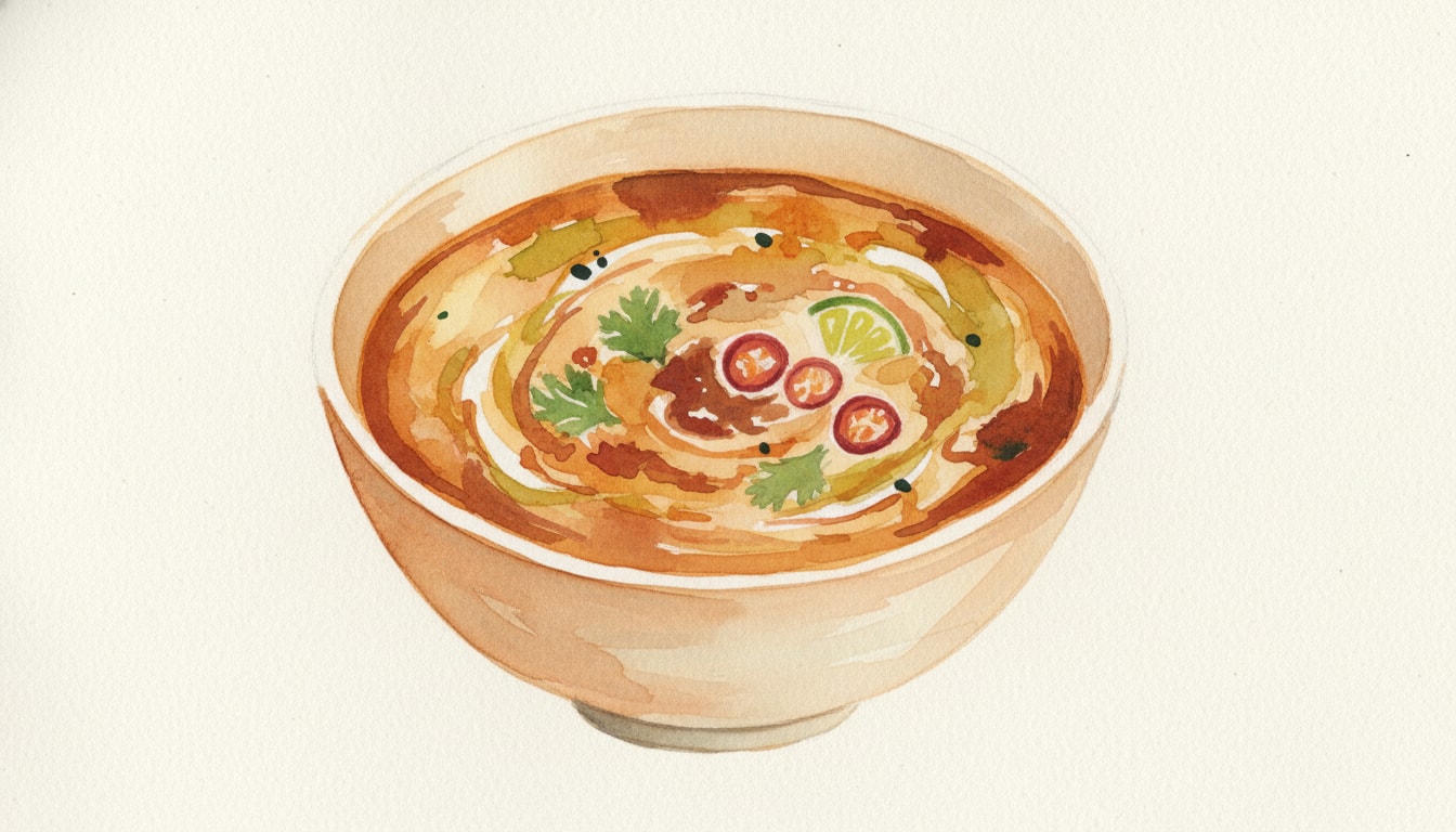Taste and adjust seasoning with salt or chili if desired. Use an immersion blender briefly if a completely smooth texture is preferred. Ladle into bowls and garnish with chopped peanuts and cilantro.