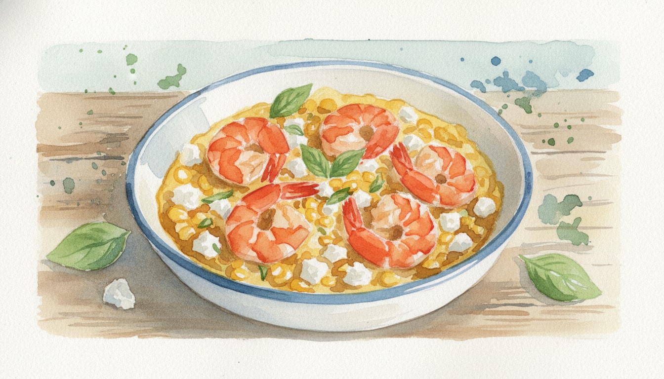 Remove from heat. Stir in lemon juice and half the parsley. To serve, spoon a generous mound of the feta corn into a bowl and top with the shrimp and tomato sauce. Garnish with remaining parsley.