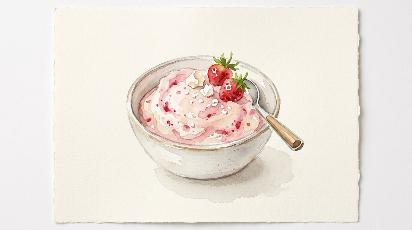 - Excess water is the enemy of creamy no-churn ice cream. Take the time to properly reduce your strawberry compote until it resembles a thick jam to avoid icy pockets.