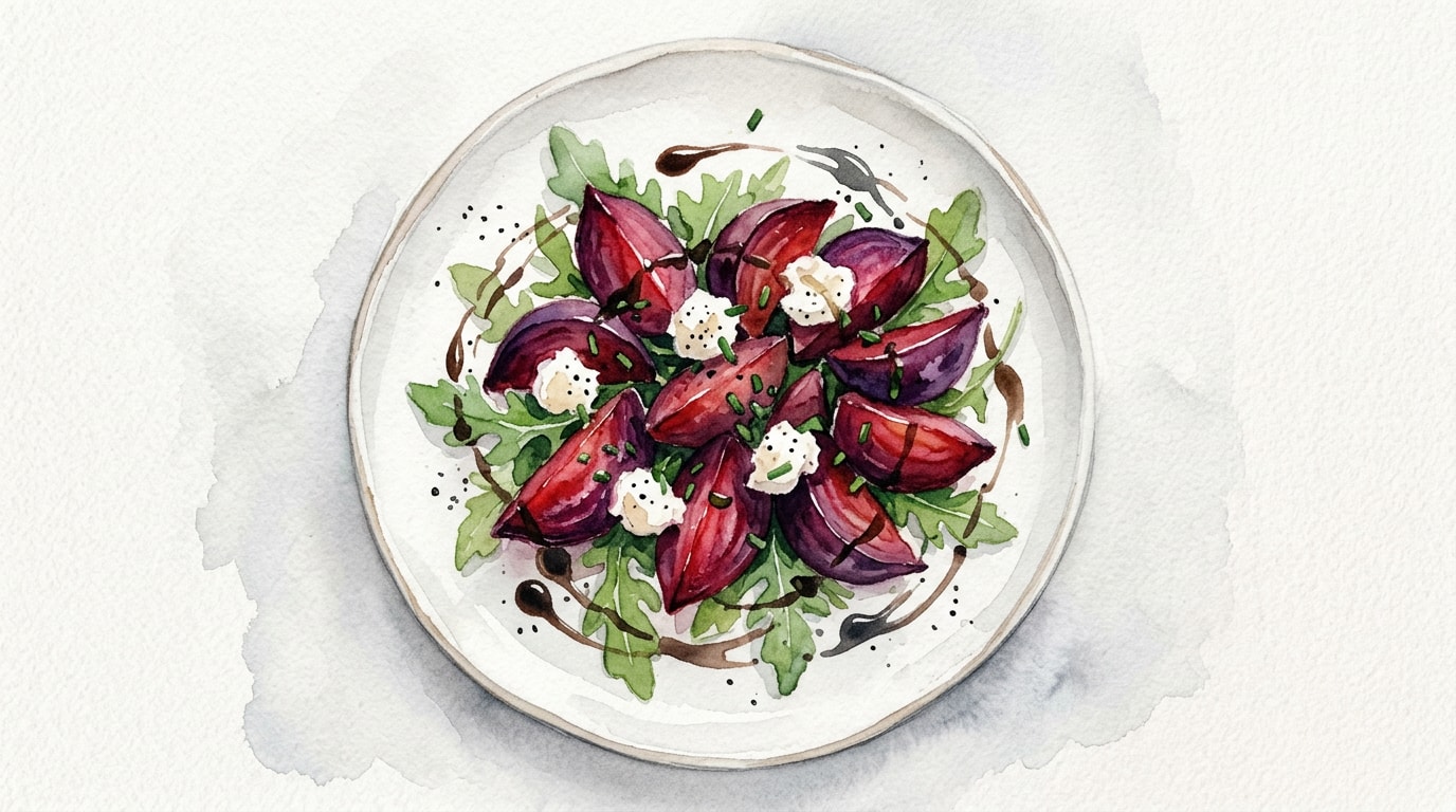 Arrange the warm or room-temperature beetroot wedges on a serving platter. Evenly distribute the crumbled goat cheese over the top.