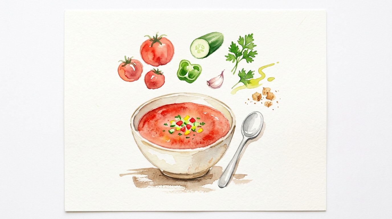 - Traditional Andalusian gazpacho includes stale white bread soaked in water, which acts as a thickener and emulsifier. This recipe omits it for a lighter, gluten-free profile, but you can blend in 50g of crustless day-old bread if you prefer a thicker, classic texture.