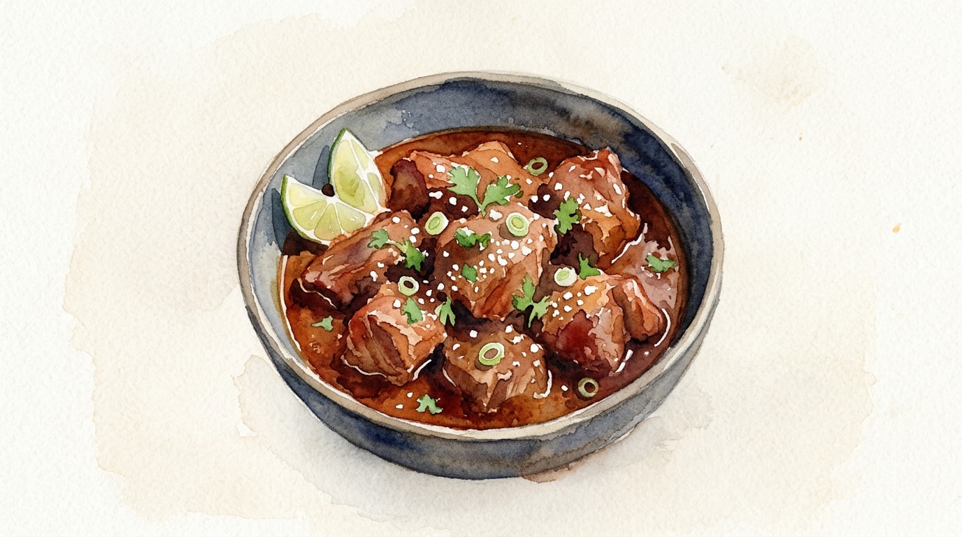 Bring the liquid to a gentle simmer on the stove. Once simmering, cover the Dutch oven tightly with its lid and transfer it to an oven preheated to 160C/320F. Braise undisturbed for 2.5 to 3 hours, or until the pork yields entirely when pressed with a fork and reaches an internal temperature of at least 90C/195F to ensure the connective tissues have melted.