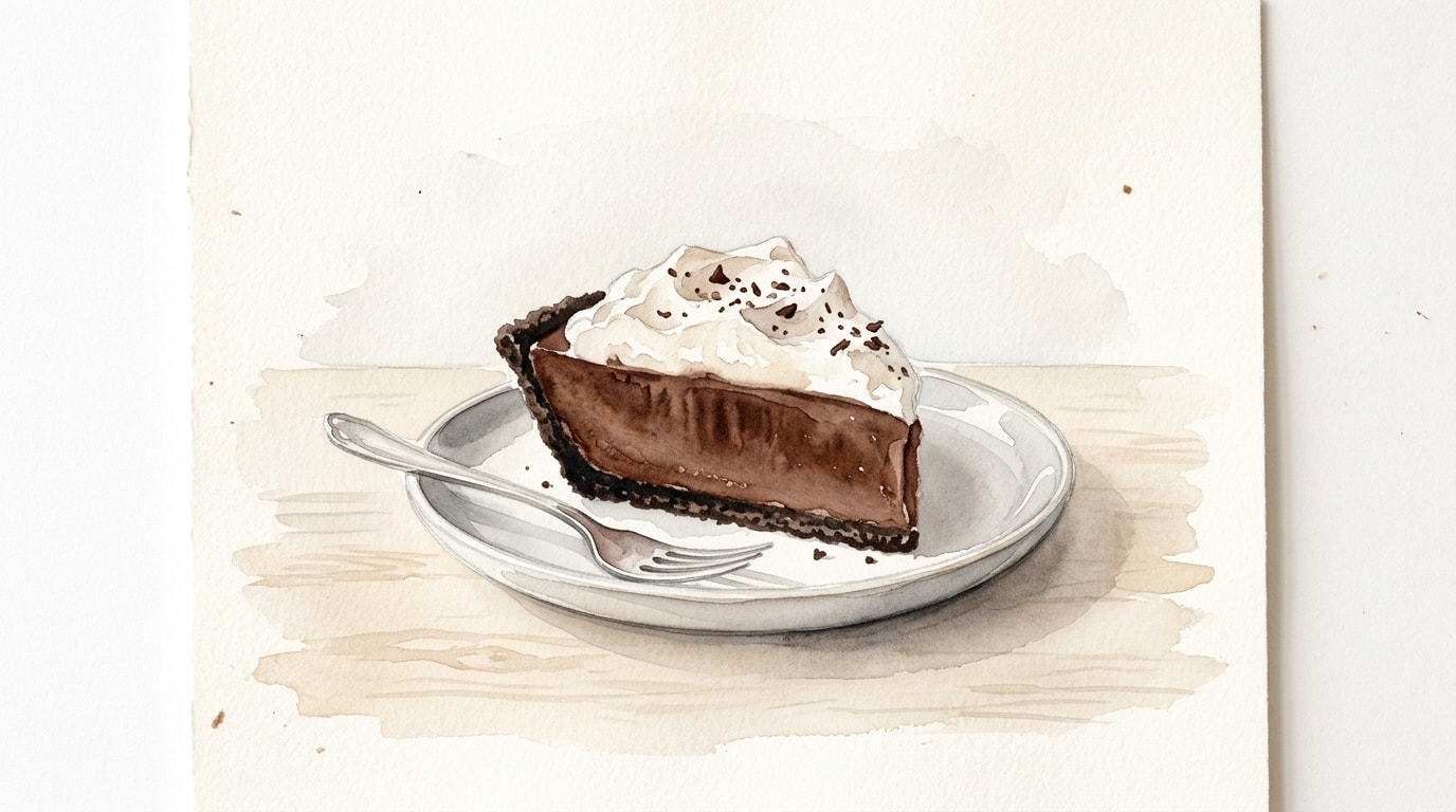 Before serving, whip the remaining heavy cream with powdered sugar and vanilla extract until stiff peaks form. Spread or pipe onto the chilled pie and garnish with shaved dark chocolate.