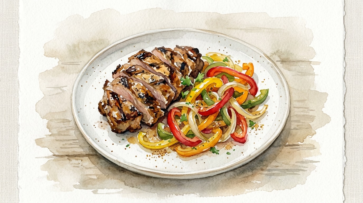 Serve the rested, sliced lamb alongside or directly on top of the sautéed bell peppers and onions. Garnish with chopped fresh cilantro if desired.
