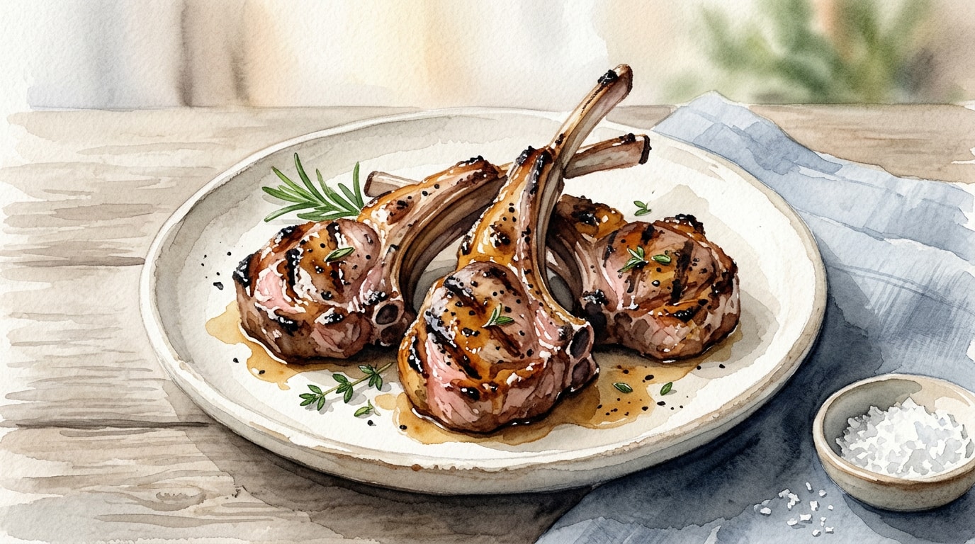 Transfer the grilled lamb chops to a clean cutting board or serving platter. Tent loosely with aluminum foil and let rest for 5 minutes before serving to allow the internal juices to redistribute evenly.