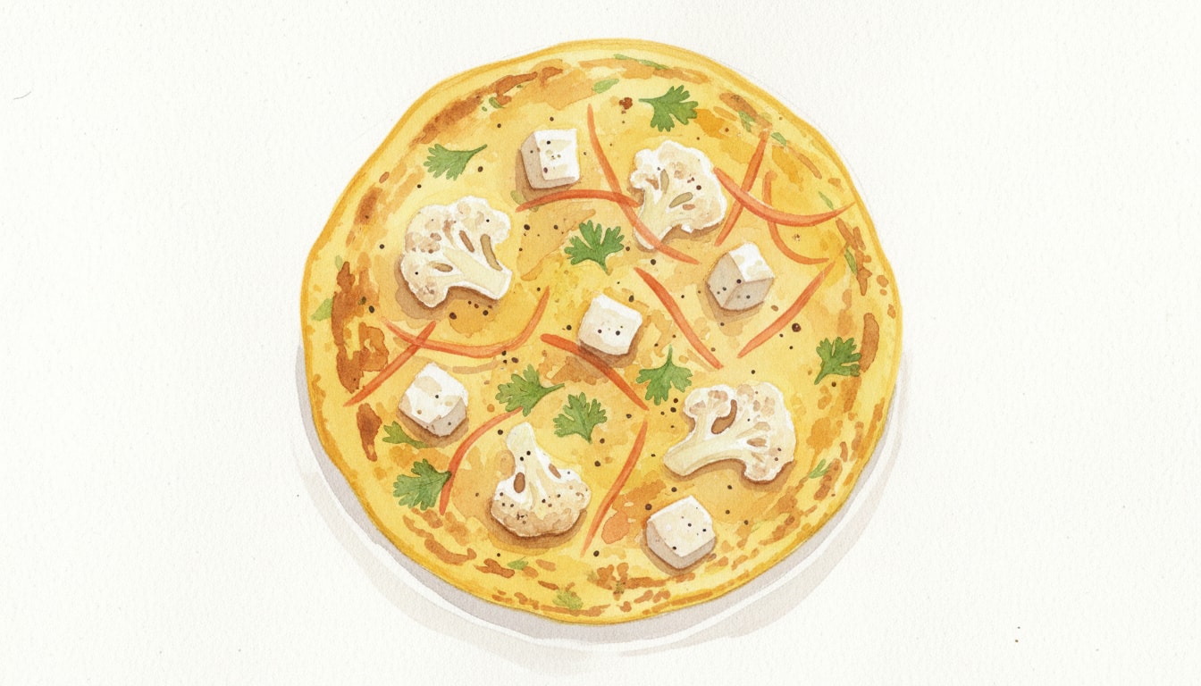 Add the grated cauliflower, carrots, ginger, green chili, and cilantro. Fold gently. Add the crumbled cottage cheese last, folding lightly to keep distinct curds intact. Let batter rest for 15 minutes.