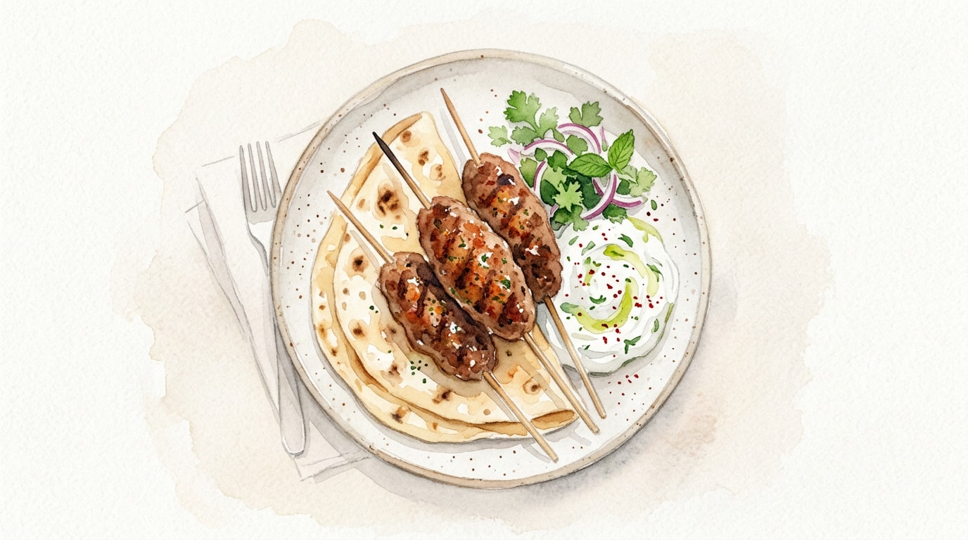 Preheat a grill pan over medium-high heat. Brush the shaped koftas lightly with olive oil. Grill the skewers, turning every few minutes, until they develop a dark brown crust on all sides and reach a safe internal temperature of 71°C/160°F.