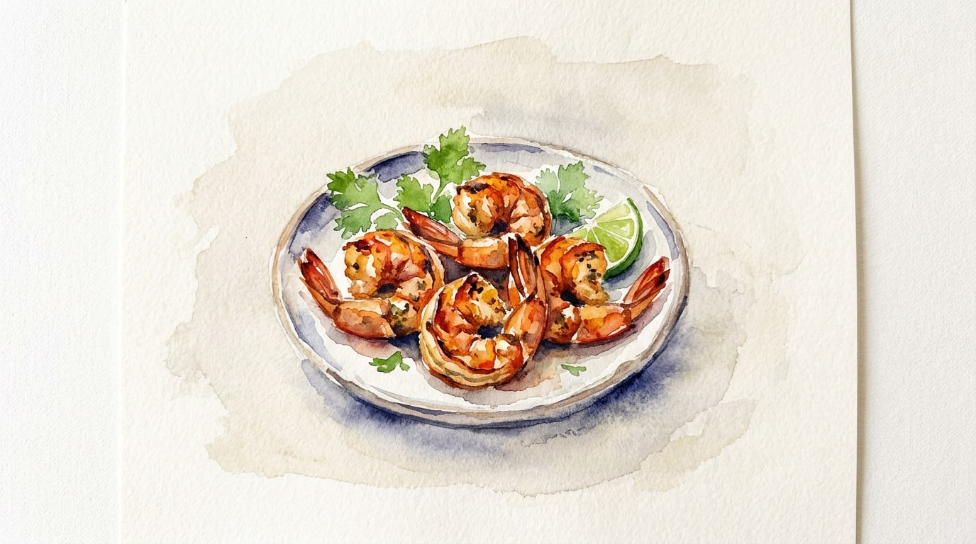 Thread the marinated shrimp onto the skewers. Place the skewers on the hot grill and cook for 2 to 3 minutes per side. The shrimp are done when they develop light char marks and turn completely opaque. Ensure an internal temperature of 63°C/145°F is reached.