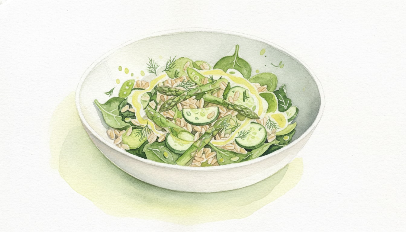 Dry the cooled vegetables thoroughly with a kitchen towel. Add them to the farro along with the scallions and dill. Toss with the remaining dressing. Gently fold in the diced avocado right before serving.
