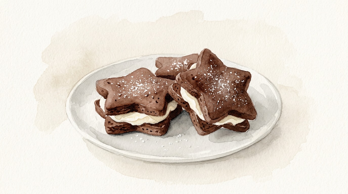 Transfer the mascarpone filling to a piping bag. Pipe a layer of filling onto the flat bottom side of half the baked star cookies. Top with the remaining cookies, flat side down, pressing gently to push the filling to the edges.