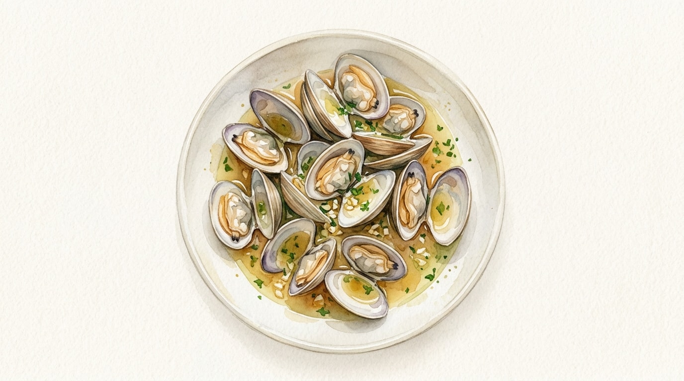 - 1000 g littleneck clams, live, scrubbed