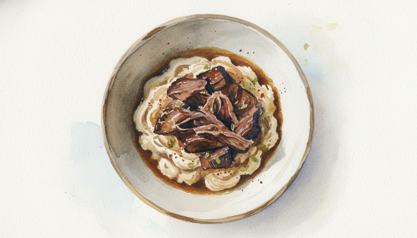 Reheating: Reheat brisket gently in sauce on stovetop. Reheat mash with a splash of water or milk to loosen.