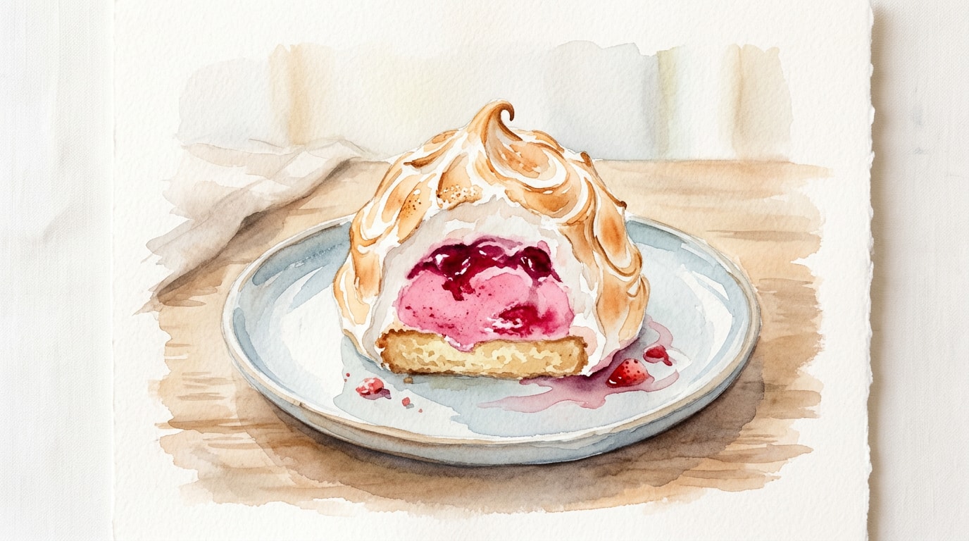 Freezer: 3 days — Store the assembled, un-meringued dome tightly wrapped in the freezer. Once covered in meringue and torched, it should be served immediately.