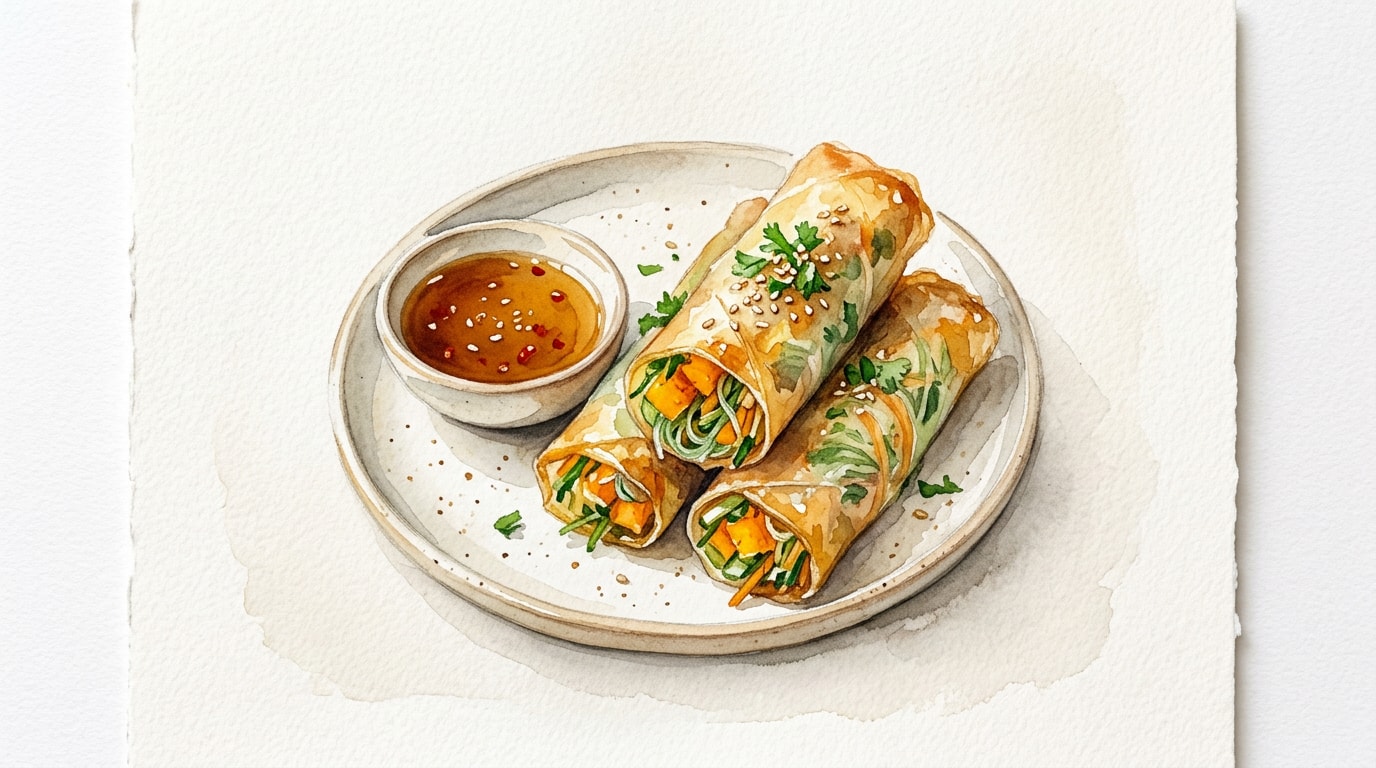 Serve the spring rolls immediately alongside the savory dipping sauce.