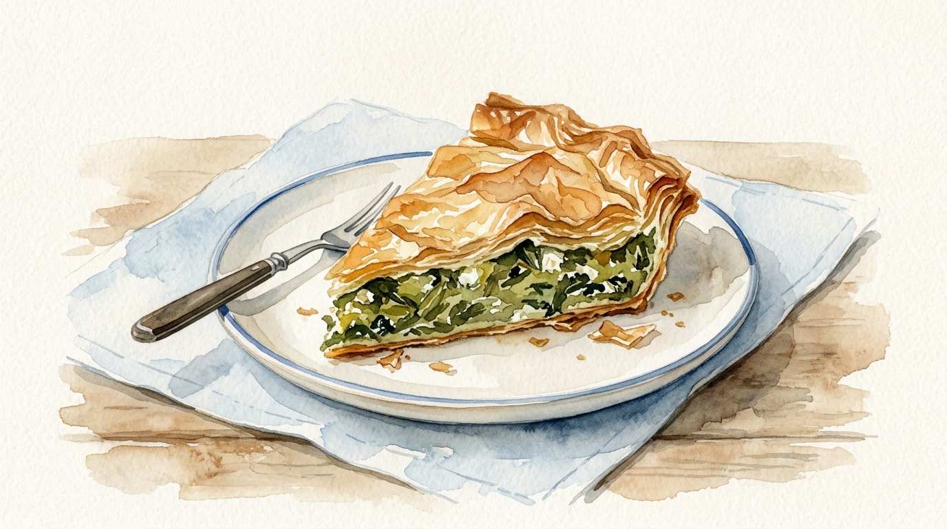 Bake in the preheated oven for 40 to 45 minutes. The pie is done when the phyllo is deeply golden brown, crisp, and the egg filling is fully set, reaching an internal temperature of 74 C (165 F).