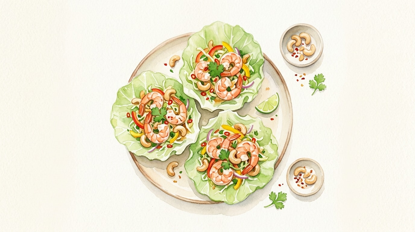 Spoon the warm prawn and cashew mixture generously into the crisp cabbage leaves and serve immediately.