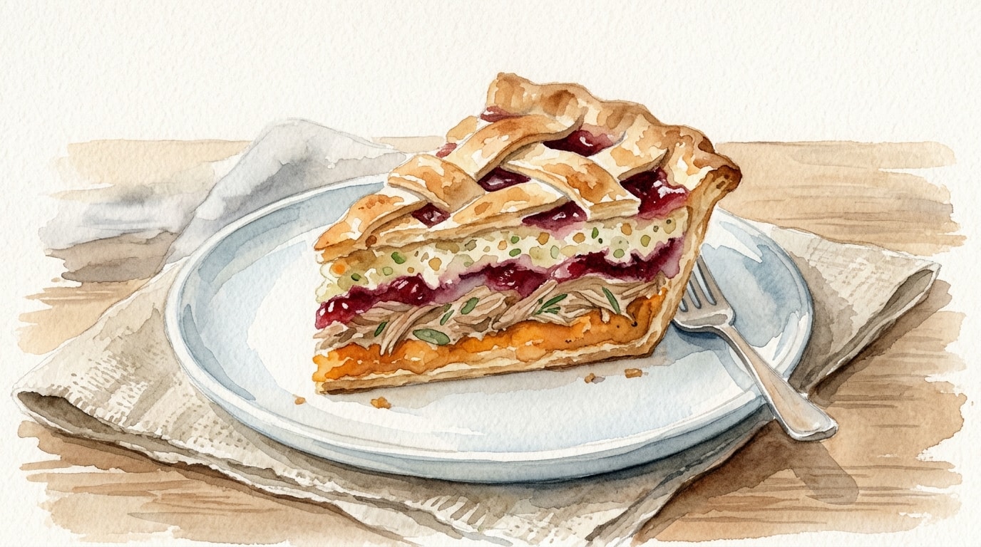 Roll out the remaining puff pastry to form a lid and place it over the top of the turkey filling.