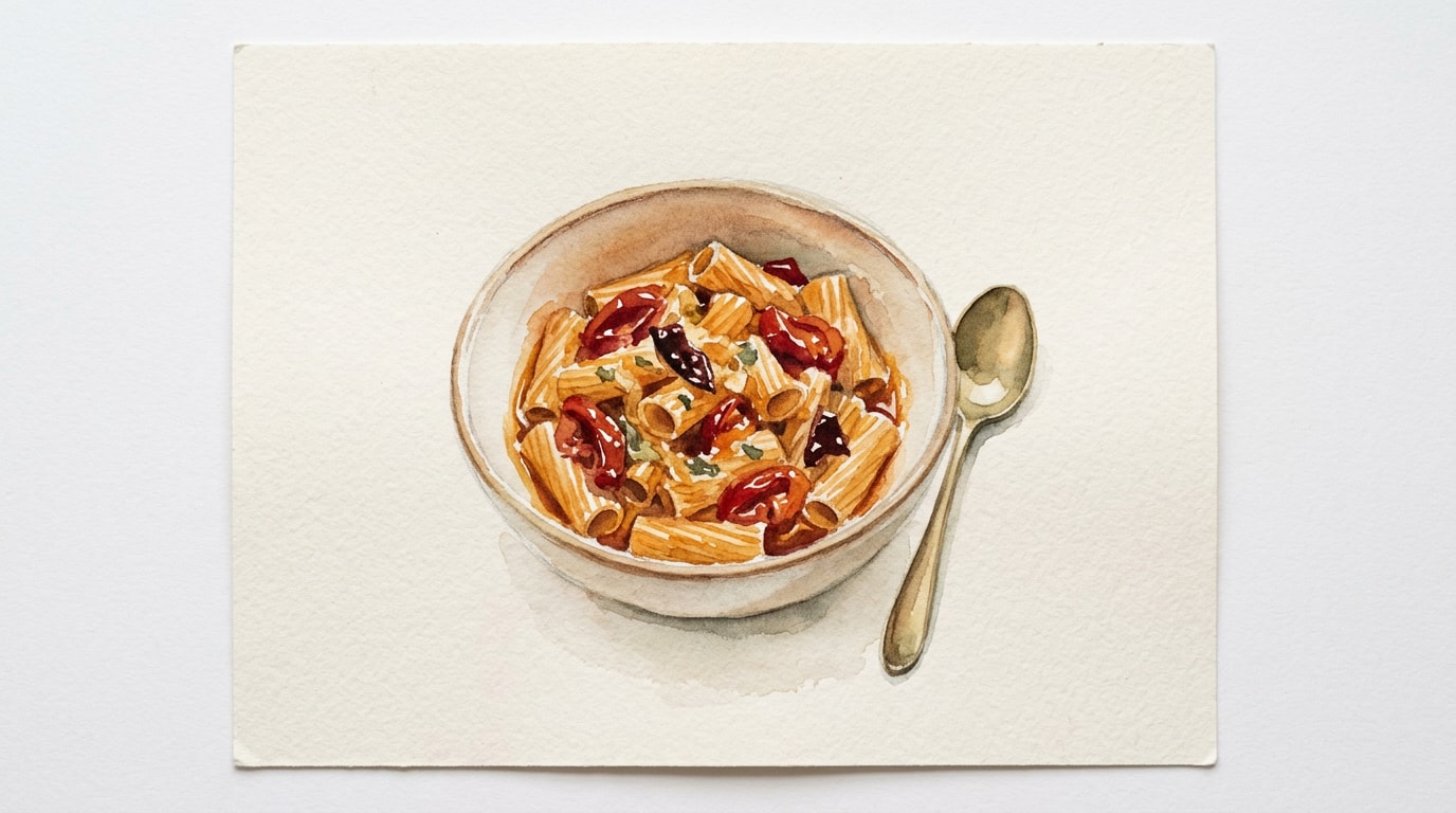 Transfer the hot, drained rigatoni directly into the baking dish with the warm confit. Vigorously toss the pasta with tongs while adding small splashes of the reserved pasta water. Continue tossing until the oil, tomato juices, and starchy water emulsify into a glossy sauce that clings to the noodles.