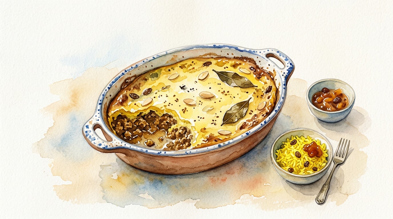 Remove the bobotie from the oven and let it rest for 10 minutes. This allows the juices to redistribute and the custard to firm up, making it much easier to slice neatly.
