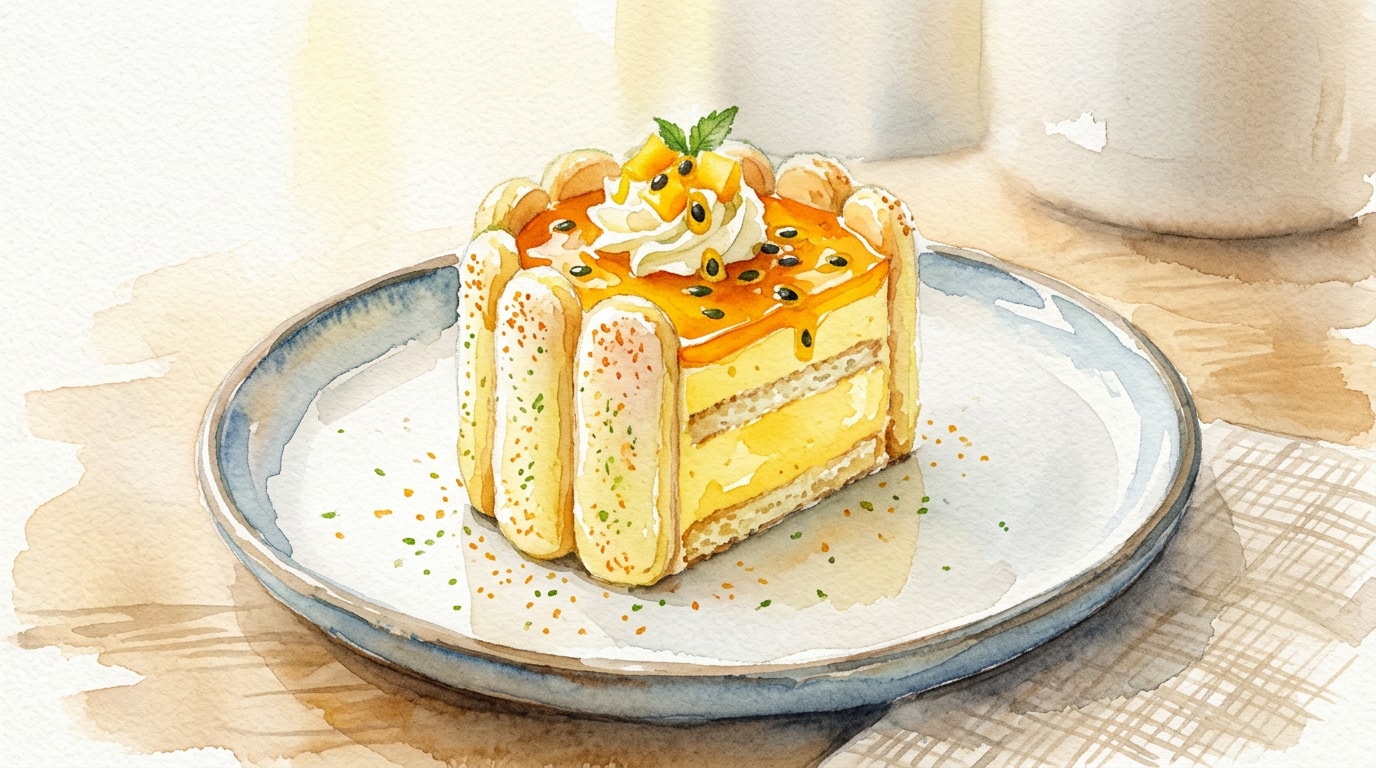 Pour the passion fruit bavarois into the savoiardi-lined mold, leaving about 1cm of space at the top for the jelly. Refrigerate for at least 4 hours to set completely.