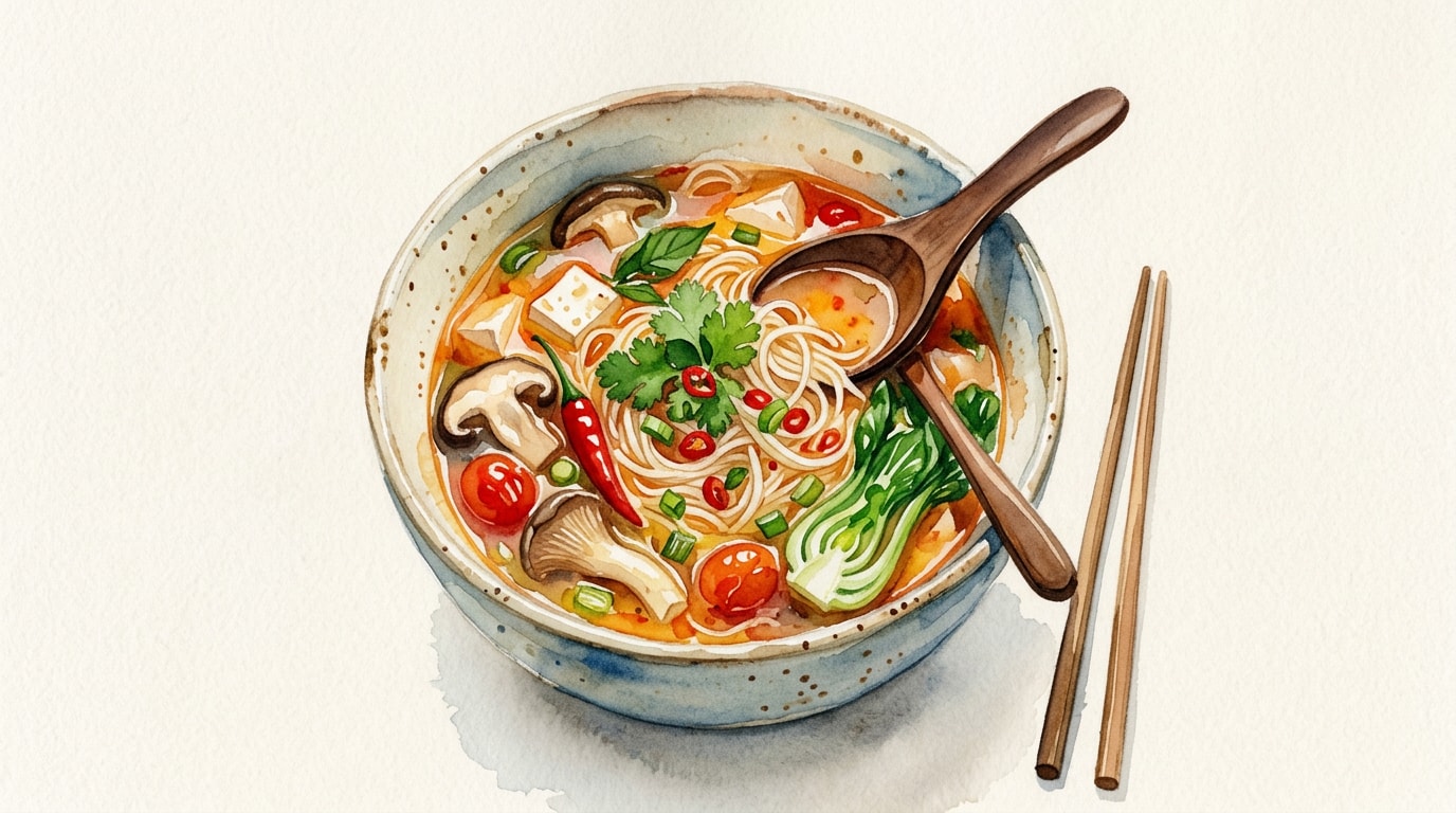Stir in the tamari, fresh lime juice, and coconut sugar. Taste the broth. It should be a balanced interplay of sour, salty, and spicy. Adjust with more lime juice for sourness or tamari for saltiness if needed.