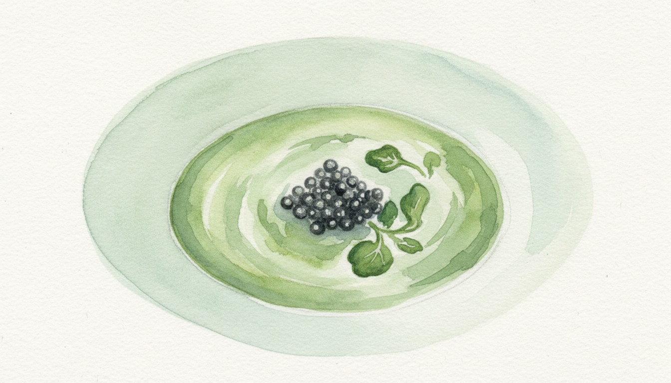 Ladle the soup into warmed bowls. Place a dollop of crème fraîche in the center, create a small well in the cream, and top with a teaspoon of caviar. Serve immediately.