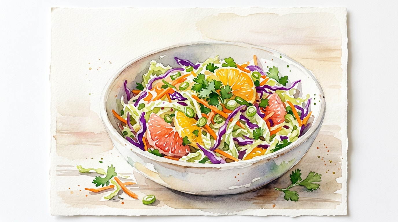 Allow the slaw to rest at room temperature for 15 minutes before serving. This brief resting period lets the cabbage soften slightly and absorb the bright citrus flavors.
