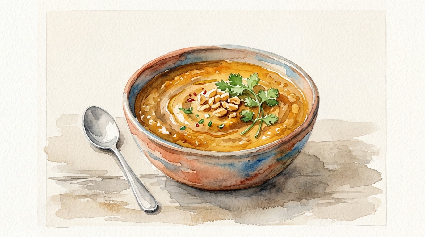 Turn off the heat and stir in the fresh lime juice. Ladle the hot soup into bowls and garnish with chopped cilantro and crushed peanuts.