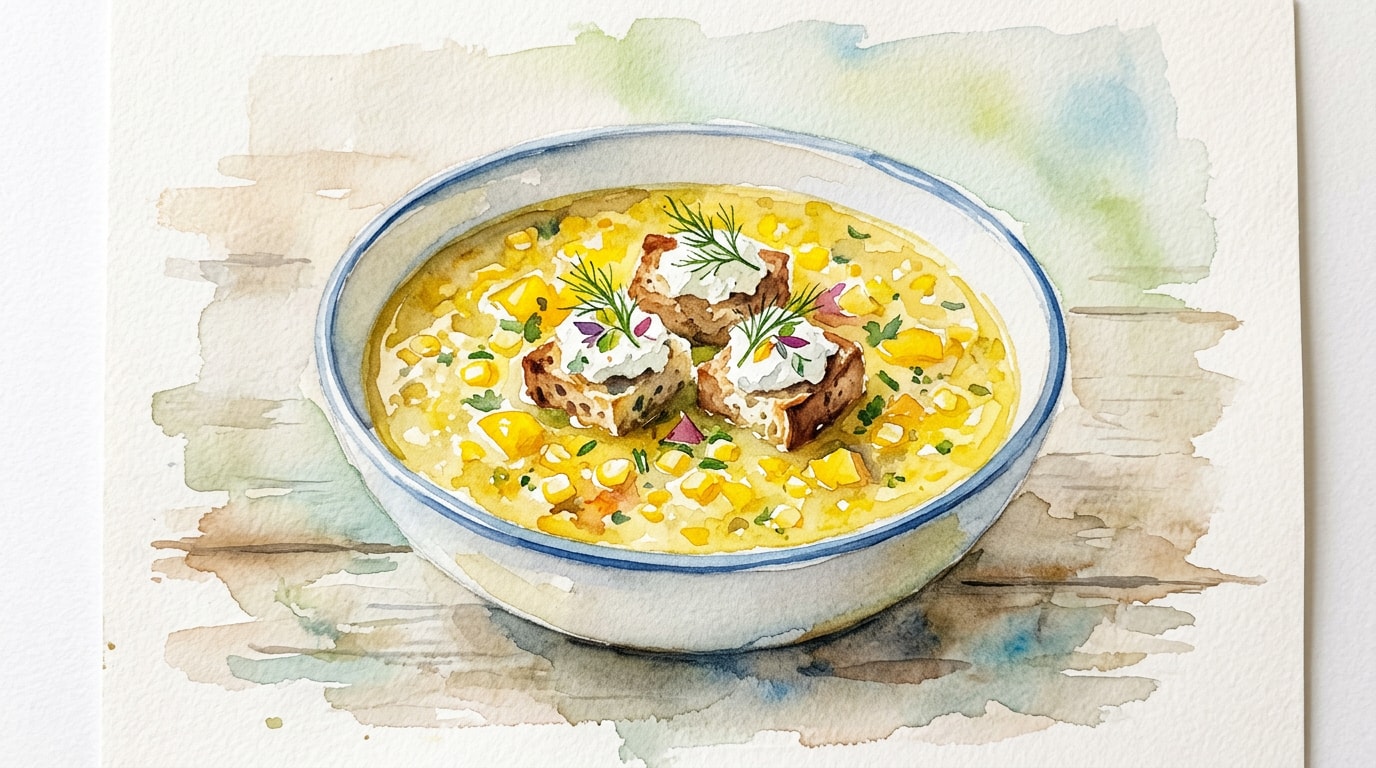 Pour the deeply chilled yellow gazpacho into shallow bowls. Garnish each bowl with the goat cheese croutons and an extra drizzle of high-quality olive oil.